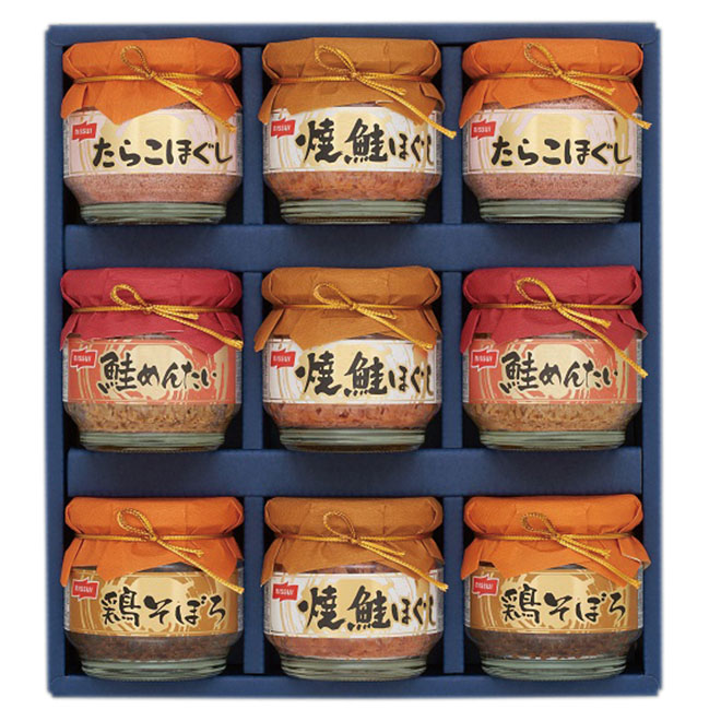 焼鮭ほぐし50g×3、たらこほぐし50g×2、鮭めんたい50g×2、鶏そぼろ50g×2