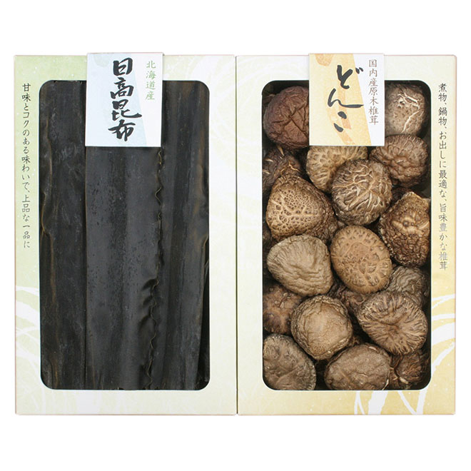 肉厚のどんこ椎茸と日高昆布の詰め合わせ。いろんなお調理のお出し、和風料理に最適です。