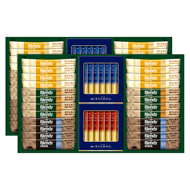 「ブレンディ」スティックカフェオレ、ミルクたっぷり、甘さなし×各16、「ちょっと贅沢な珈琲店」スティックブラックブラジルブレンド、モカブレンド×各14