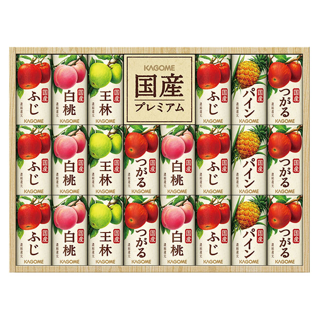 国産ふじ125ml×6、国産(白桃、つがる)各125ml×5、国産(王林、パイン)125ml×3