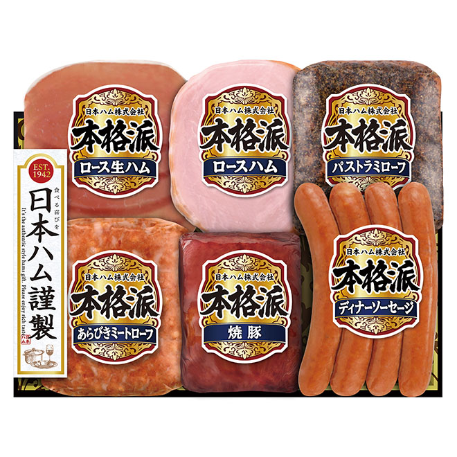 ロースハム160g、焼豚140g、パストラミローフ128g、ロース生ハム27g、あらびきミートローフ128g、ディナーソーセージ132g