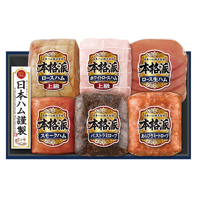 上級ロースハム340g、上級ホワイトロースハム340g、ロース生ハム27g、スモークハム152g、パストラミローフ128g、あらびきミートローフ128g