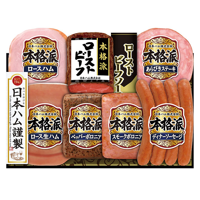 ローストビーフ140g、ローストビーフソース40g、ロースハム160g、あらびきステーキ72g、ロース生ハム27g、ペッパーボロニア105g、スモークボロニア105g、ディナーソーセージ132g
