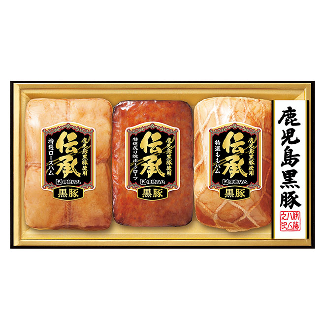 鹿児島黒豚特選ロースハム340g、鹿児島黒豚特選炙り焼ポークローフ160g、鹿児島黒豚特選ももハム220g