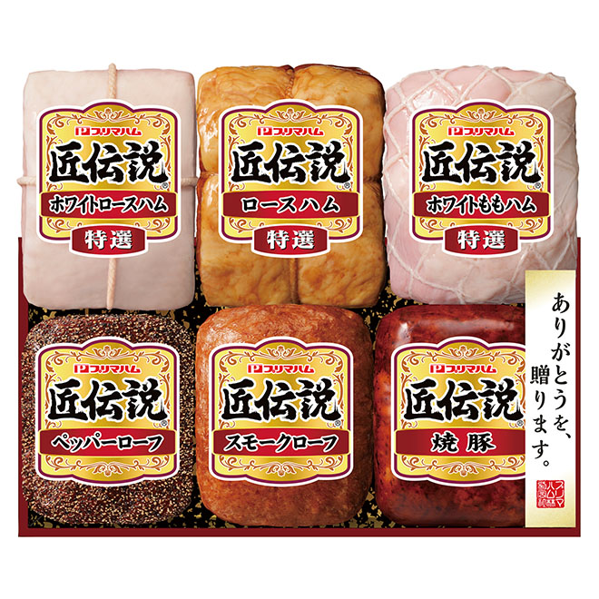 特選ホワイトロースハム360g、特選ロースハム360g、特選ホワイトももハム250g、ペッパーローフ140g、スモークローフ140g、焼豚160g