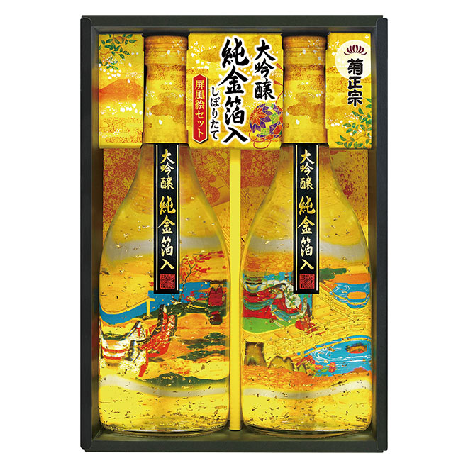 菊正宗酒造 しぼりたて大吟醸 純金箔入り屏風絵セット