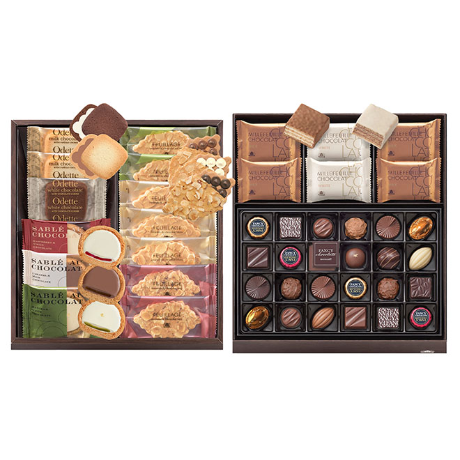 ファンシーチョコレート×25、ミルフィーユショコラ×6、サブレオショコラ×3、オデット×3、ファヤージュ×7