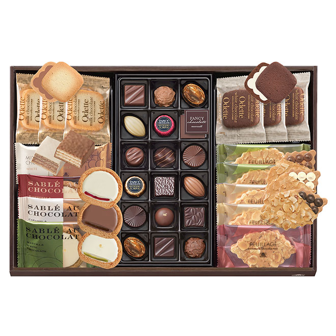 ファンシーチョコレート×19、ミルフィーユショコラ×2、サブレオショコラ×3、オデット×6、ファヤージュ×5