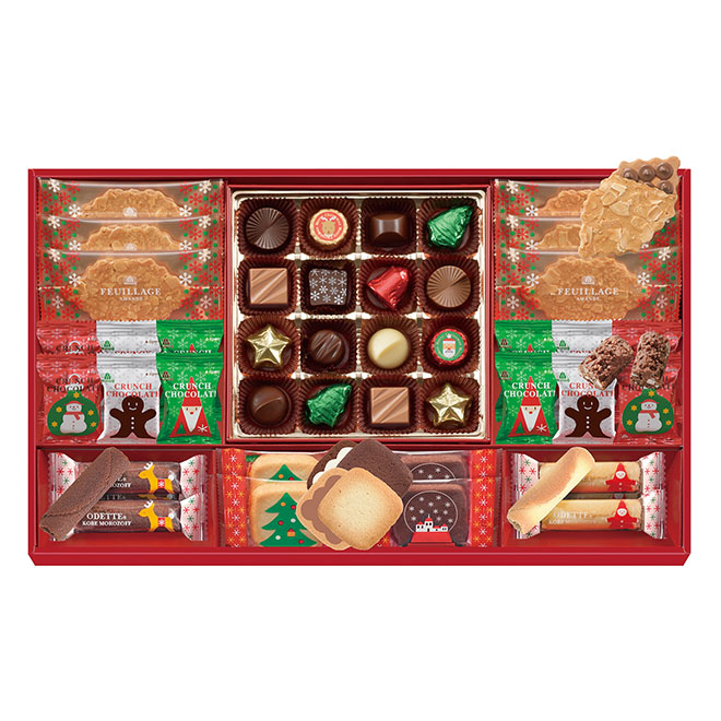 人気のチョコレートやクッキーをクリスマスパッケージにした、味も見た目も楽しいクリスマス限定のギフト。