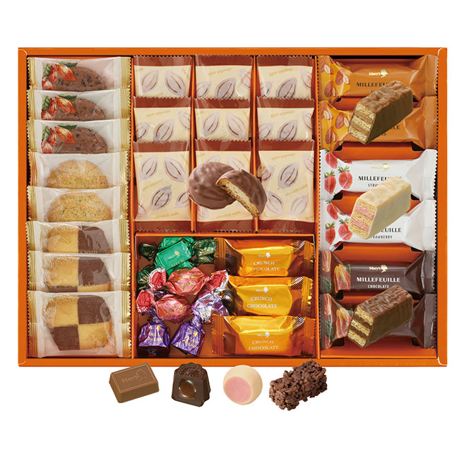 多彩な味わいのチョコレートや、チョコレートサブレ、クッキー、ミルフィーユをセットしました。