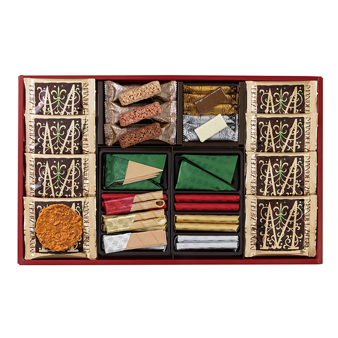 定番商品(エコルセ・マンデルチ-ゲル・ショコラエコルセ)と米粉のクランチのセットです。
