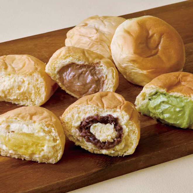 カスタード・抹茶・あんバター、おいも&カスタード×各2、チョコレート