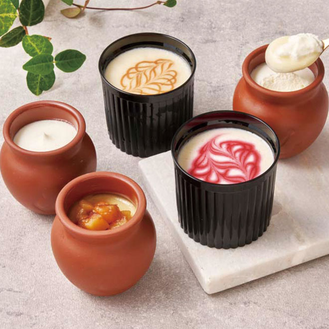 魔法の壷プリンとレアチーズケーキのバラエティ豊かなセットです。