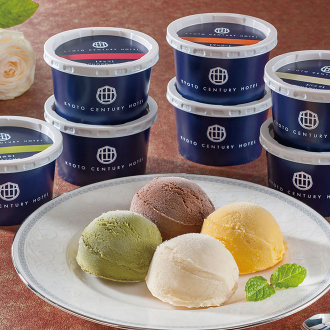 素材の風味を引き立てる、フルーツシュガー(果糖)を使った4種類のホテルアイスクリームです。95年以上の歴史と伝統を受け継ぐ、京都センチュリーホテル監修。