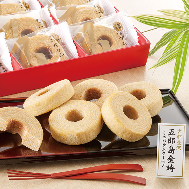 金沢市近郊で採れる五郎島金時いもを使用し、ご家族みんなで楽しめるミニバウムを作りました。五郎島金時のしっかりとした甘みとやわらかなバウムの食感が特徴です。