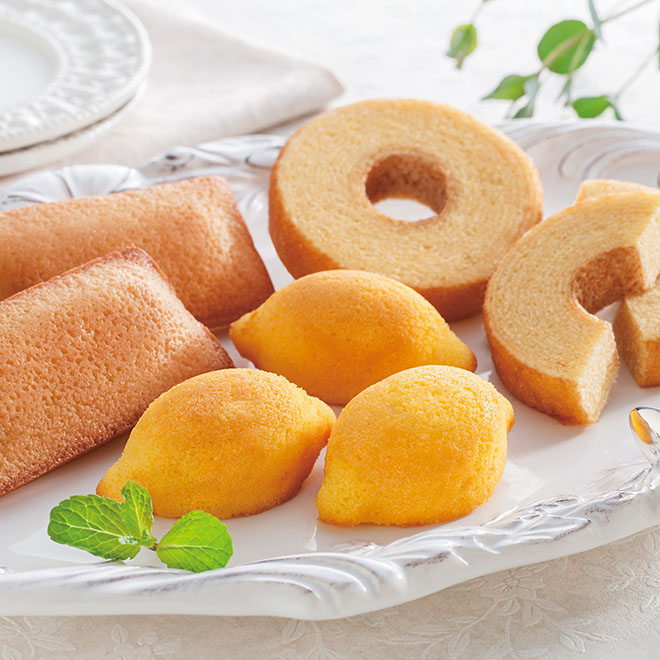 バター風味のフィナンシェと、レモンの爽やかな香りとしっとり食感が特徴のレモンケーキ、昔ながらの優しい甘さのバームクーヘン。パティシエそれぞれのこだわりが感じられるバラエティ豊かなスイーツギフトです。