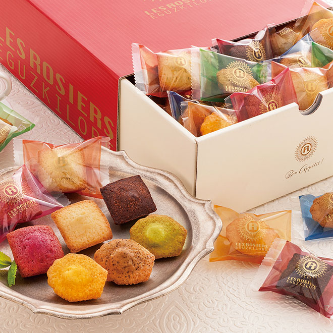 フィナンシェ(プレーン・ショコラ・フランボワーズ)×各7、マドレーヌ(ピスタチオ・アールグレイ・マンゴー)×各7(計42)