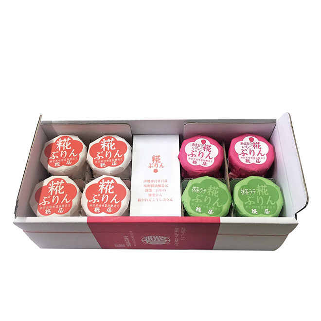 糀ぷりん80g×4、抹茶ラテ糀ぷりん80g×2、あまおう苺糀ぷりん80g×2