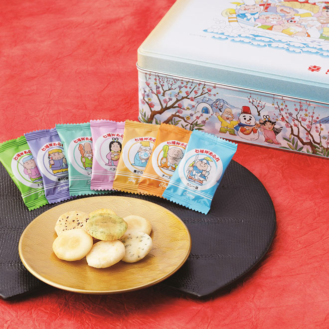 えび、青のり、しそ、バター、唐がらし、チーズ、カレー味のかろやかな七つのお味