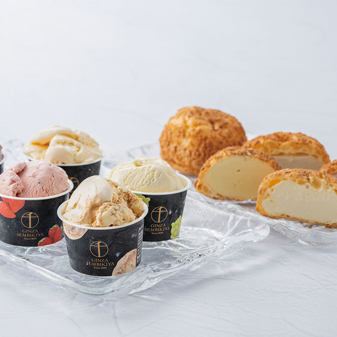 厳選した素材を使用した濃厚でなめらかなプレミアムアイスとサクサク食感のクッキーシューにこだわりのアイスクリームを閉じ込めたプレミアムシューアイスの詰合せです。