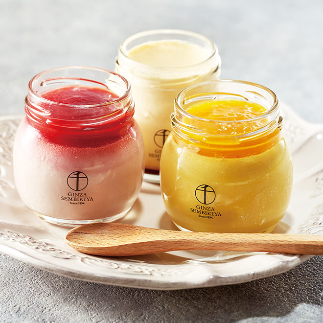 それぞれの素材の個性を考えフルーツソースをふんだんに使用。風味と味わい、なめらかな食感も楽しんでいただけるプリンです。冷蔵庫で解凍してお召し上がりください。