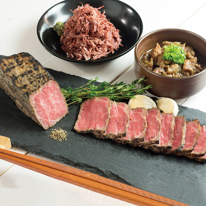 ローストビーフ(約170g)×1、和牛コンビーフ×1、和牛すじ煮×1
