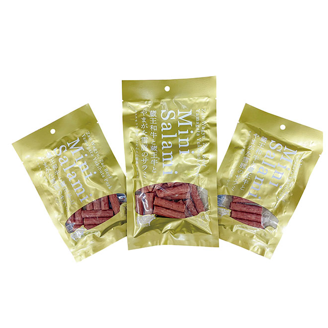 さくらチップ燻製、こだわりの粗びき仕上げ。蔵王和牛と蔵王牛とやまがたゆき豚のサラミです。
