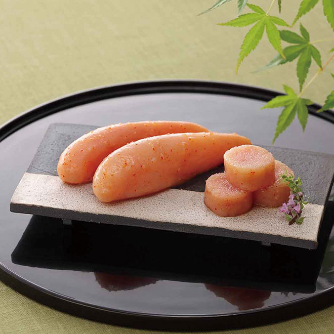 羅臼昆布・九州産ゆず・お酒・独自ブレンドの唐辛子で構成されたやまやの匠のたれ。そのたれでじっくり168時間漬け込んだこだわりの辛子明太子です。