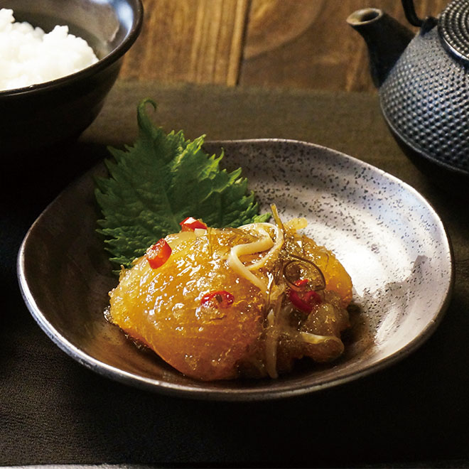 北海道道南地方で古くから伝わる郷土の味松前漬。醤油ベースの調味液に昆布とするめの美味しさが溶け出し、大ぶりの数の子によく絡み合います。おせち料理、お酒の肴に、ご飯のお供としておすすめです。