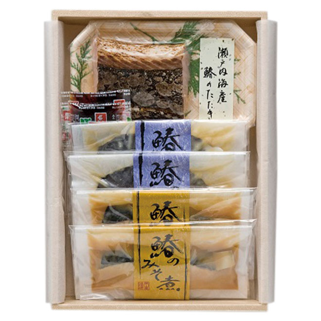 特産品の鰆を満喫できる詰合せです。味噌漬け・味噌煮・たたきを便利な個食パックにいたしました。