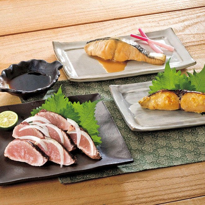 鰆の味噌漬70g×2、鰆の味噌煮60g×2、鰆のたたき120g、ポン酢付