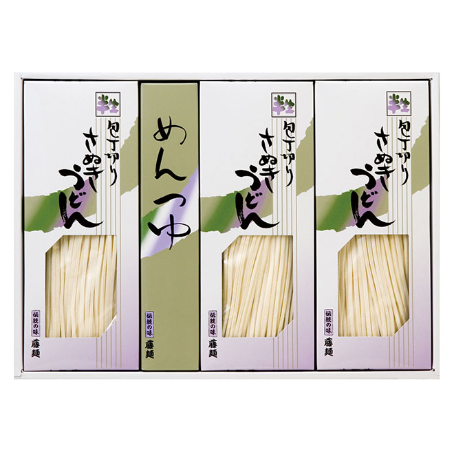 合成保存料無添加の半生うどんとかけうどん専用の濃縮つゆ付きの詰合せです。