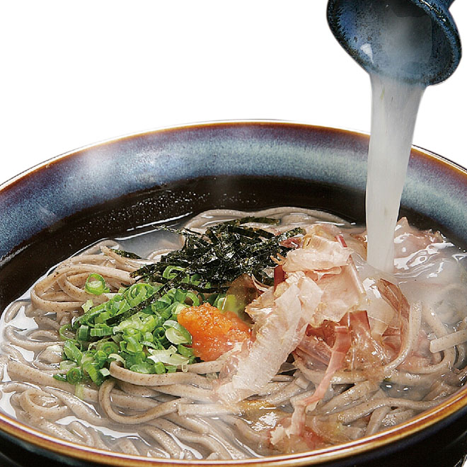 国産のそば粉、小麦粉を使用した5割そばと出汁の効いた濃縮タイプのつゆのセットです。