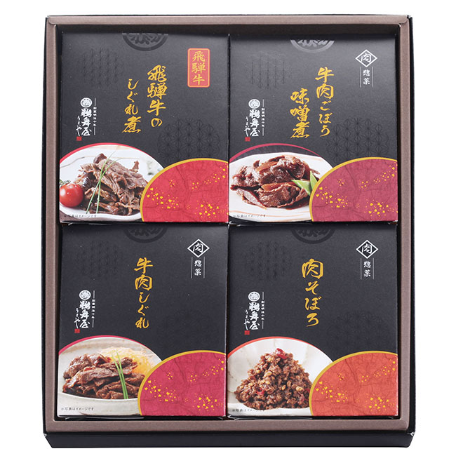 ブランド牛「飛騨牛」のしぐれ煮をはじめとした肉惣菜の詰合せです。