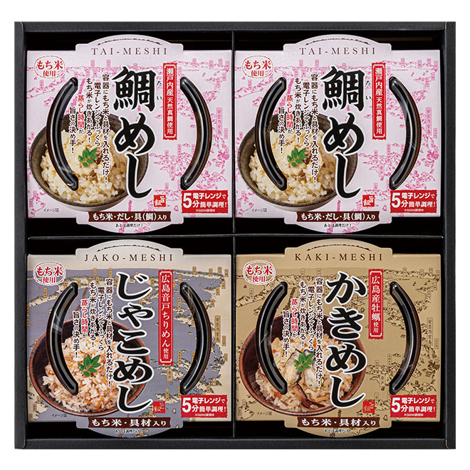 鯛めし×2、かきめし、じゃこめし各1個 計4個