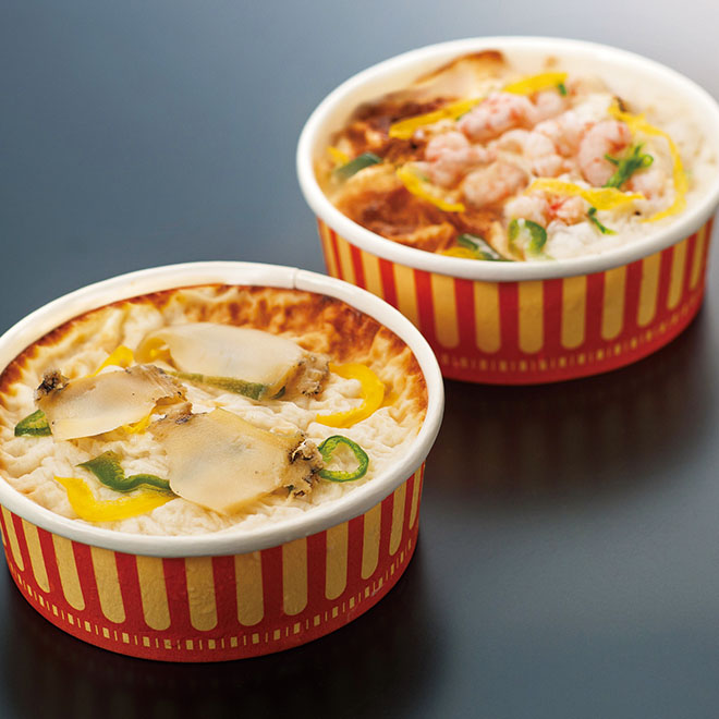 徳島県産のあわびとえびをトッピングし、滑らかな口当たりのクリームグラタンに仕上げました。レンジで手軽に楽しめます。