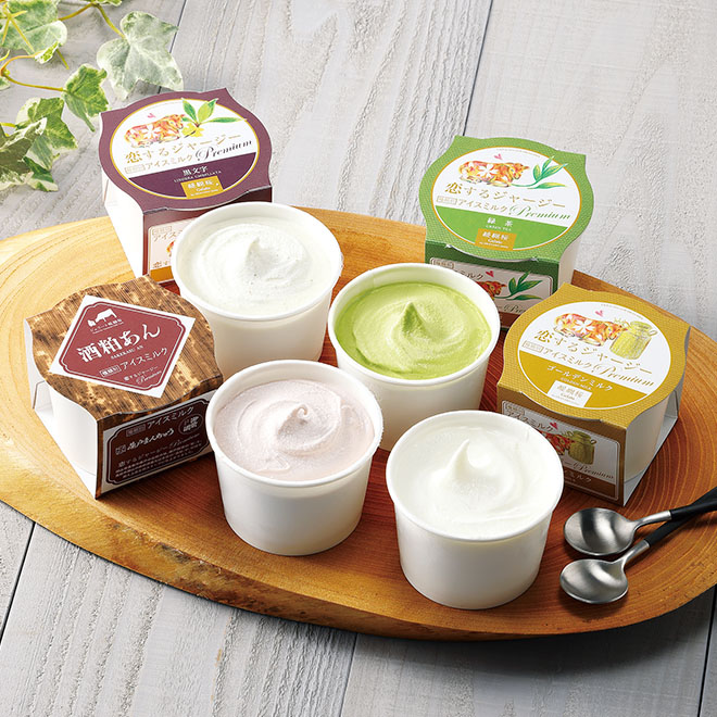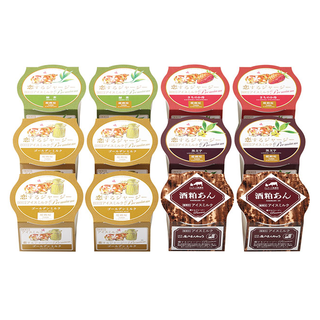 恋するジャージーPremiumゴールデンミルク×4、恋するジャージーPremium緑茶×2、恋するジャージーPremium黒文字×2、恋するジャージーPremium酒粕あん×2、恋するジャージーPremiumさちのか苺×2 各120mL