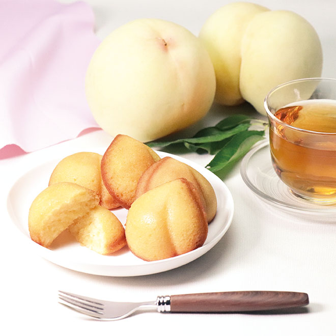 岡山県産清水白桃のピューレと県産小麦粉を使用した、もっちり食感が自慢のプレミアムケーキです。