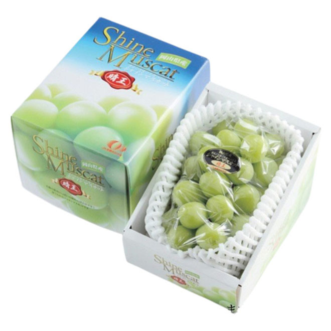 「晴王」とは岡山県下JAより出荷されるシャインマスカットの名称で、「晴れの国おかやま」で太陽の恵みをおおいに浴びて育てられたところから命名されました。美しい外観と大粒、高糖度、種無しで皮ごと食べられるシャインマスカット。噛んだ瞬間にパリッと音をたててはじけ、弾力のある食感を楽しむことができます。